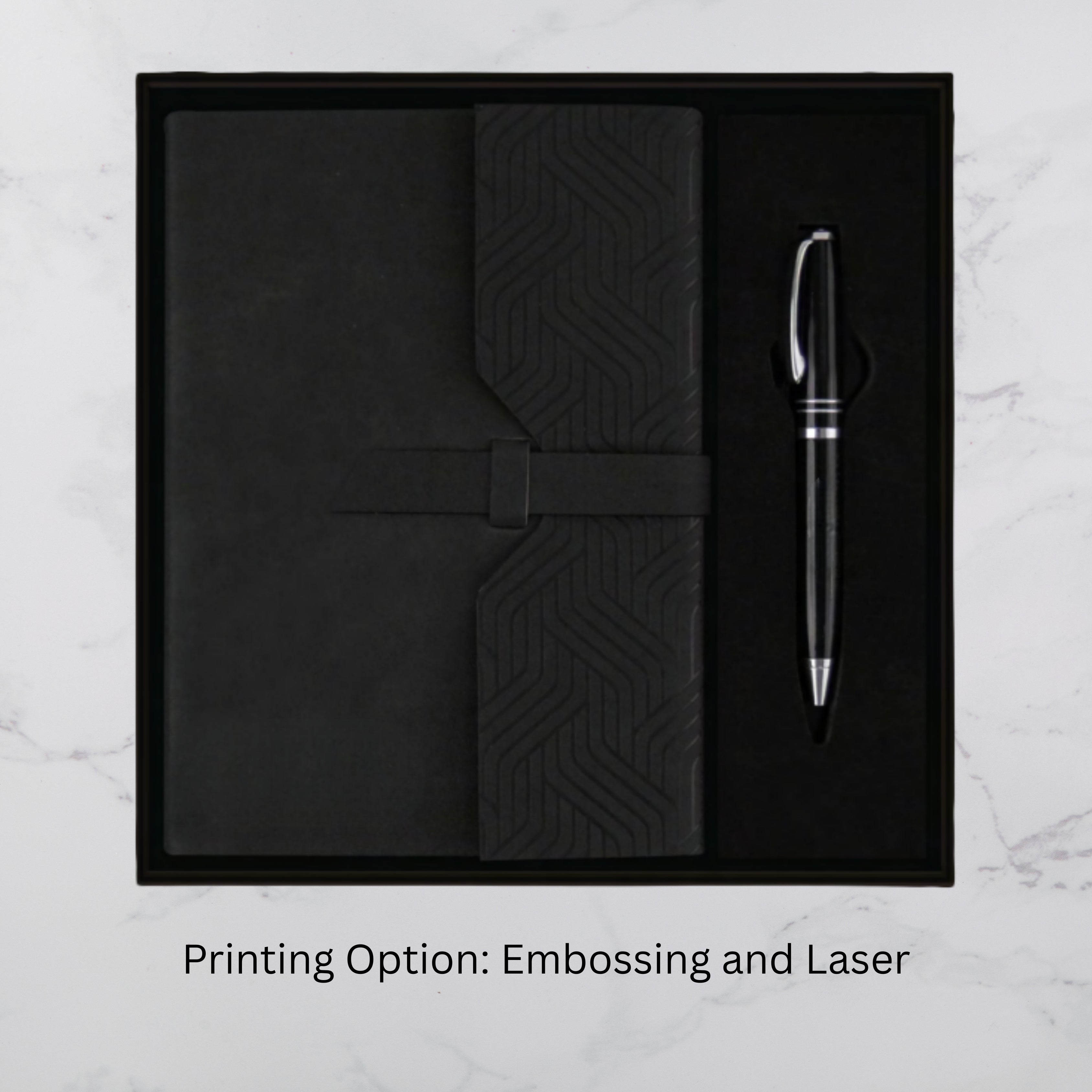 Black Designed Flap Lock Diary & Ball Pen Set (MOQ - 25)