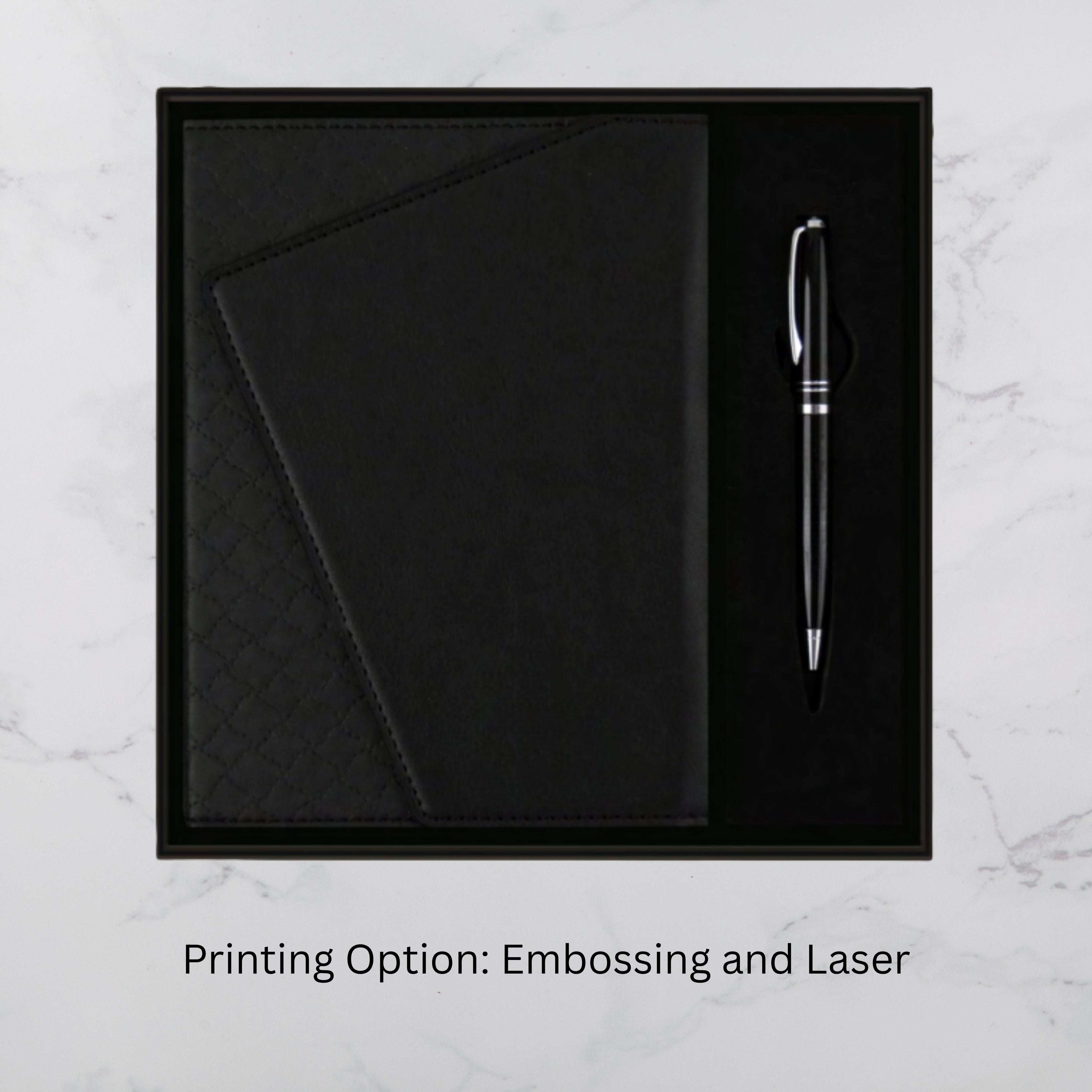 Black Dual Design Diary & Ball Pen Set (MOQ - 25)