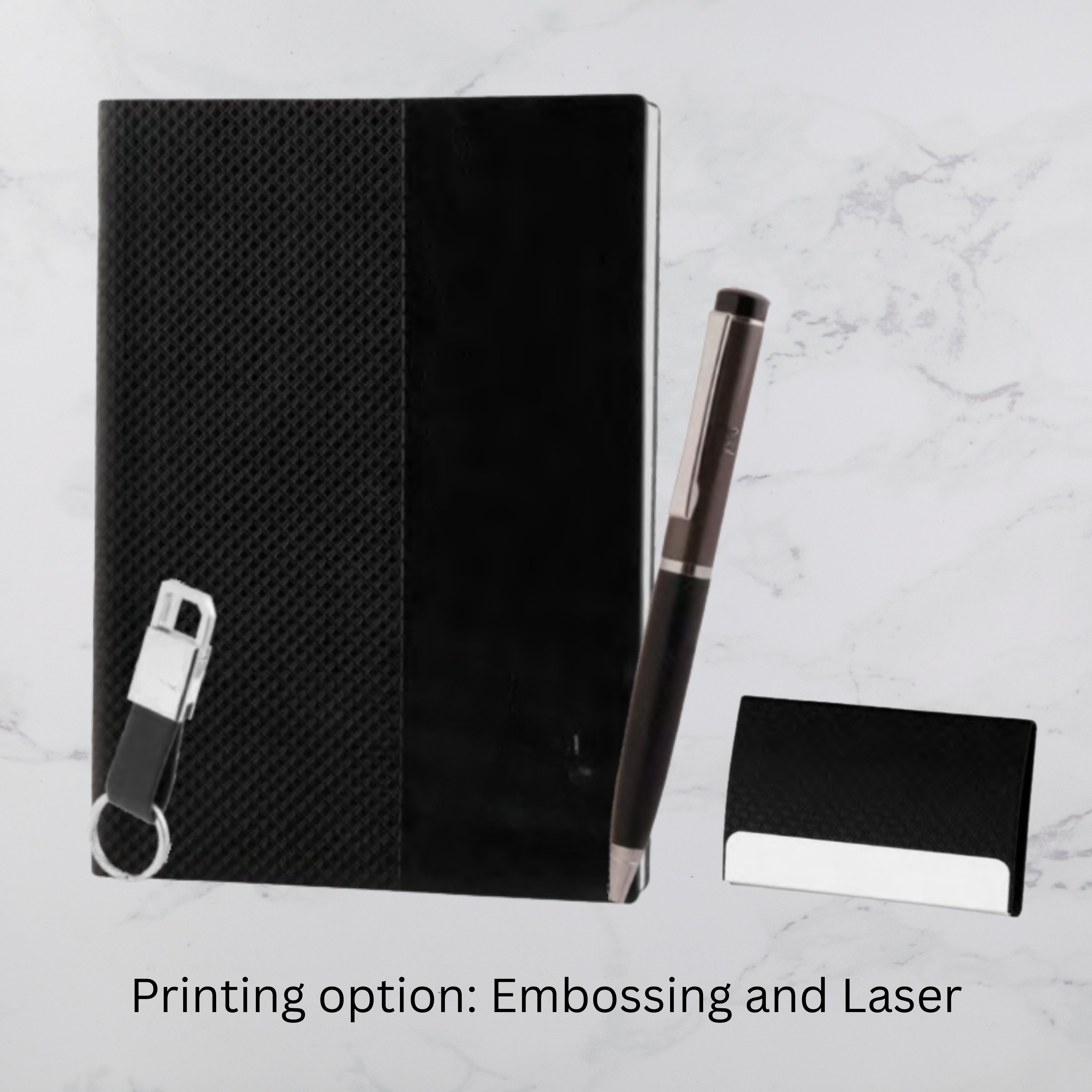 Black Dual Design Diary Keychain Card Holder & Ball Pen Set (MOQ - 25)