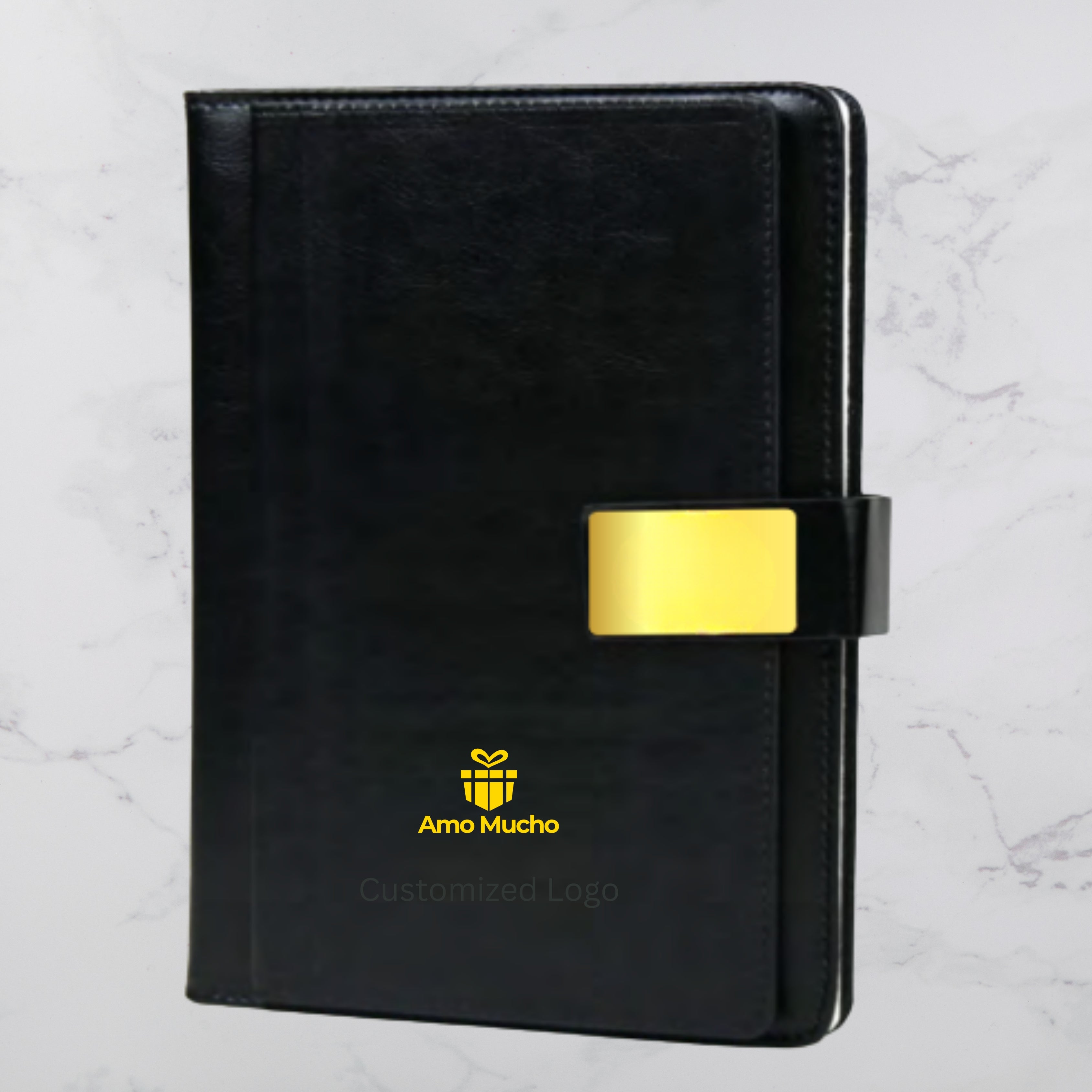 Black Professional PU Cover Diary with Strap Lock (MOQ - 25)