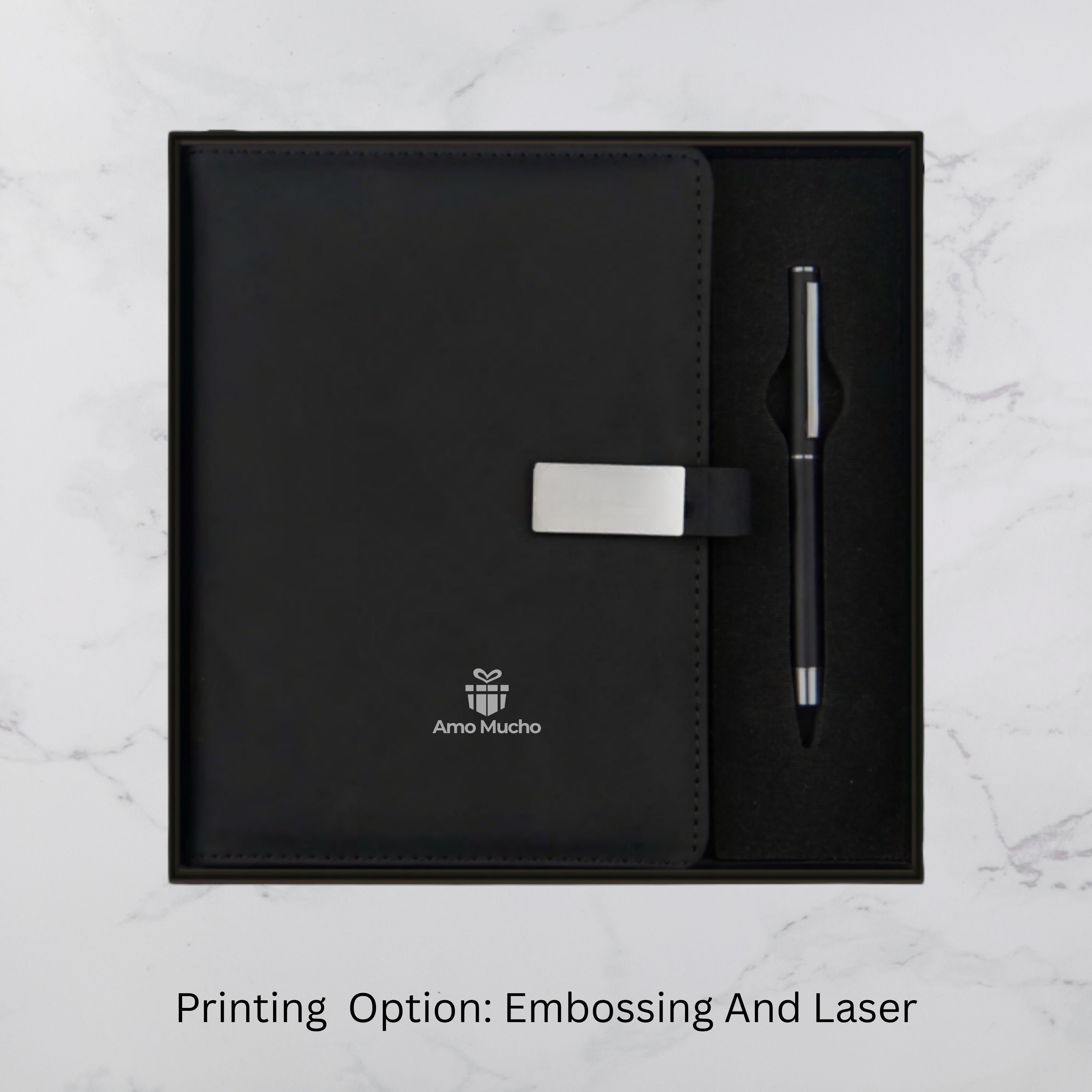 Black Smooth PU Cover Diary & Ball Pen Set (MOQ - 25)