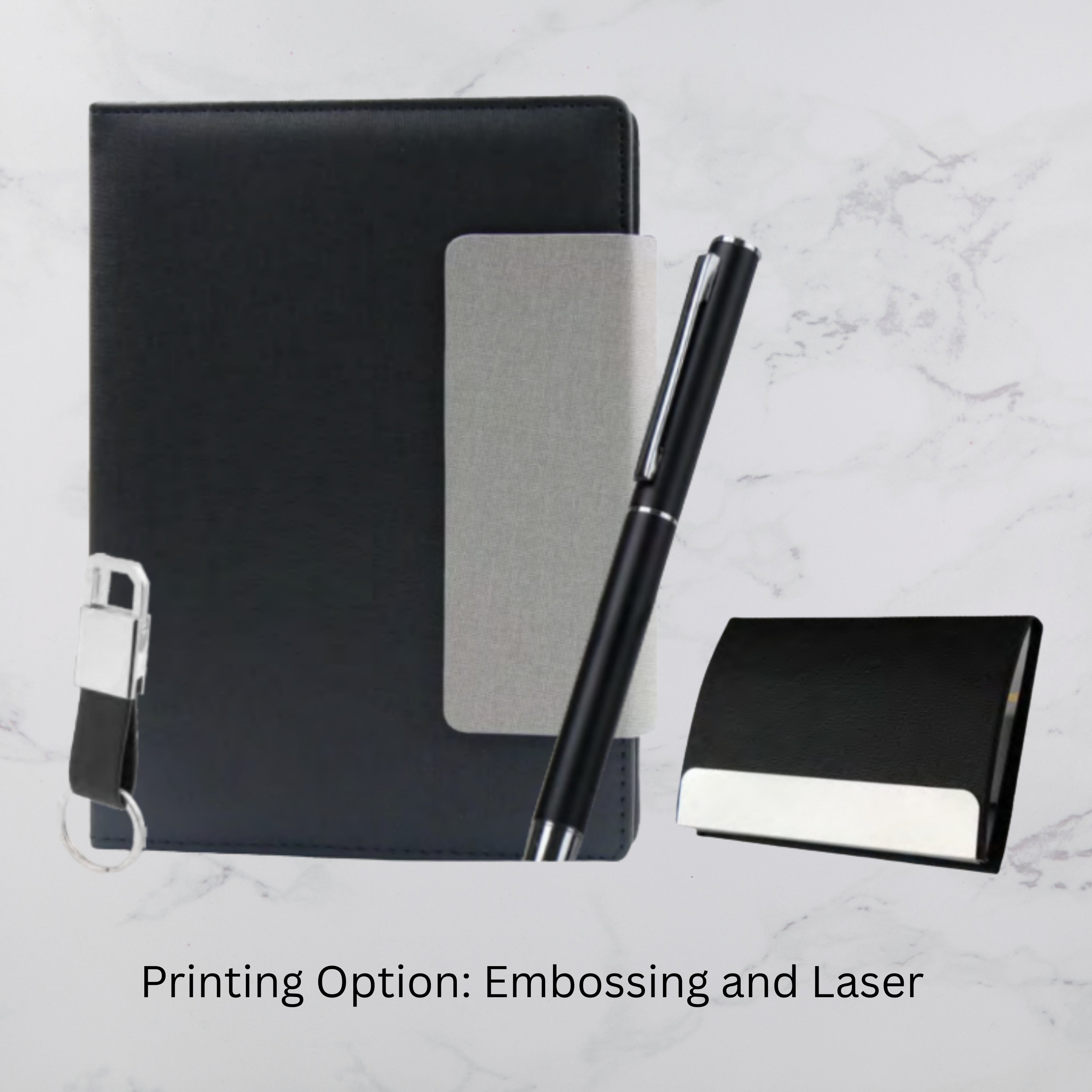 Black With Grey Flap Cover Diary Keychain Card Holder & Ball Pen Set (MOQ - 25)