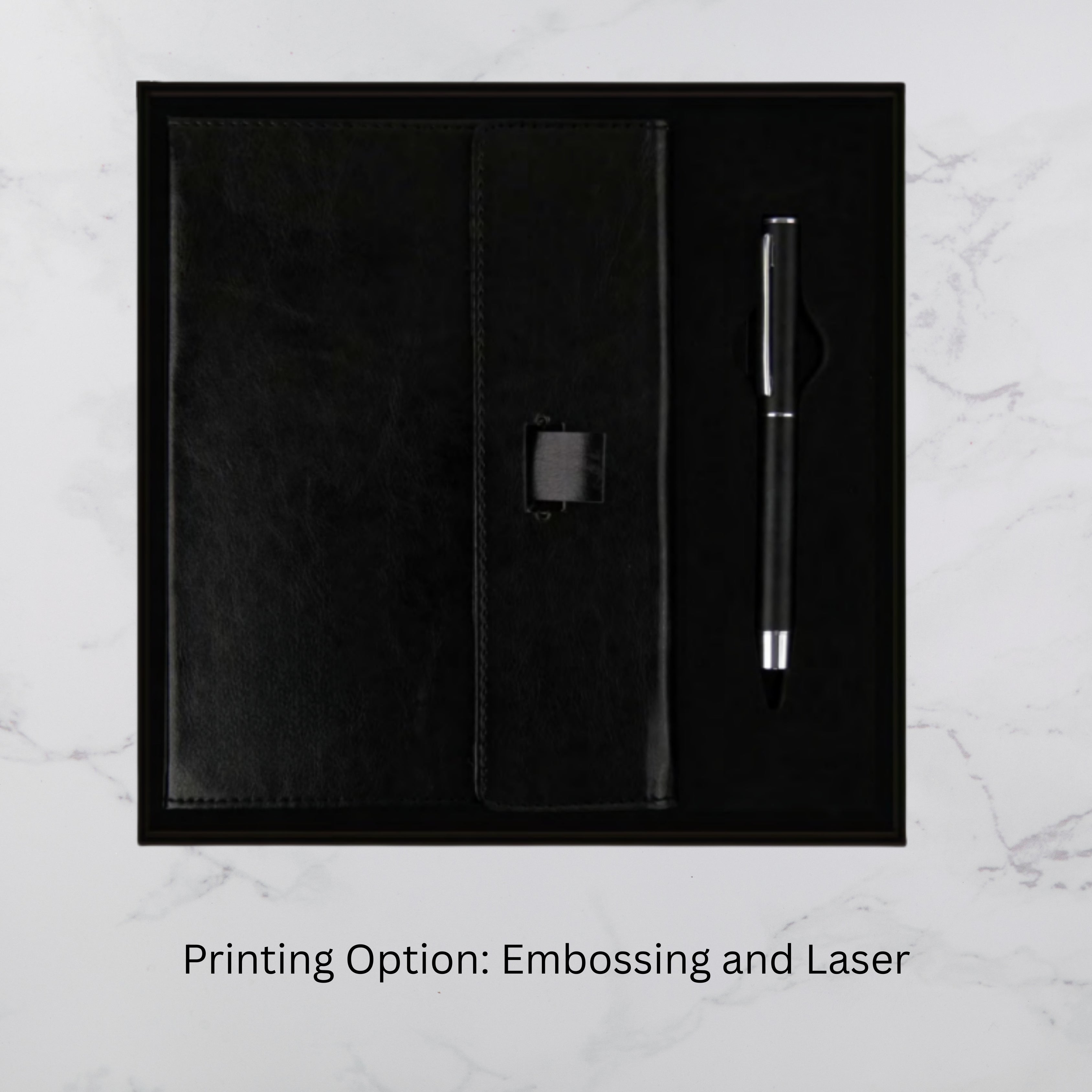 Black Smooth Flap Lock Diary & Ball Pen Set (MOQ - 25)