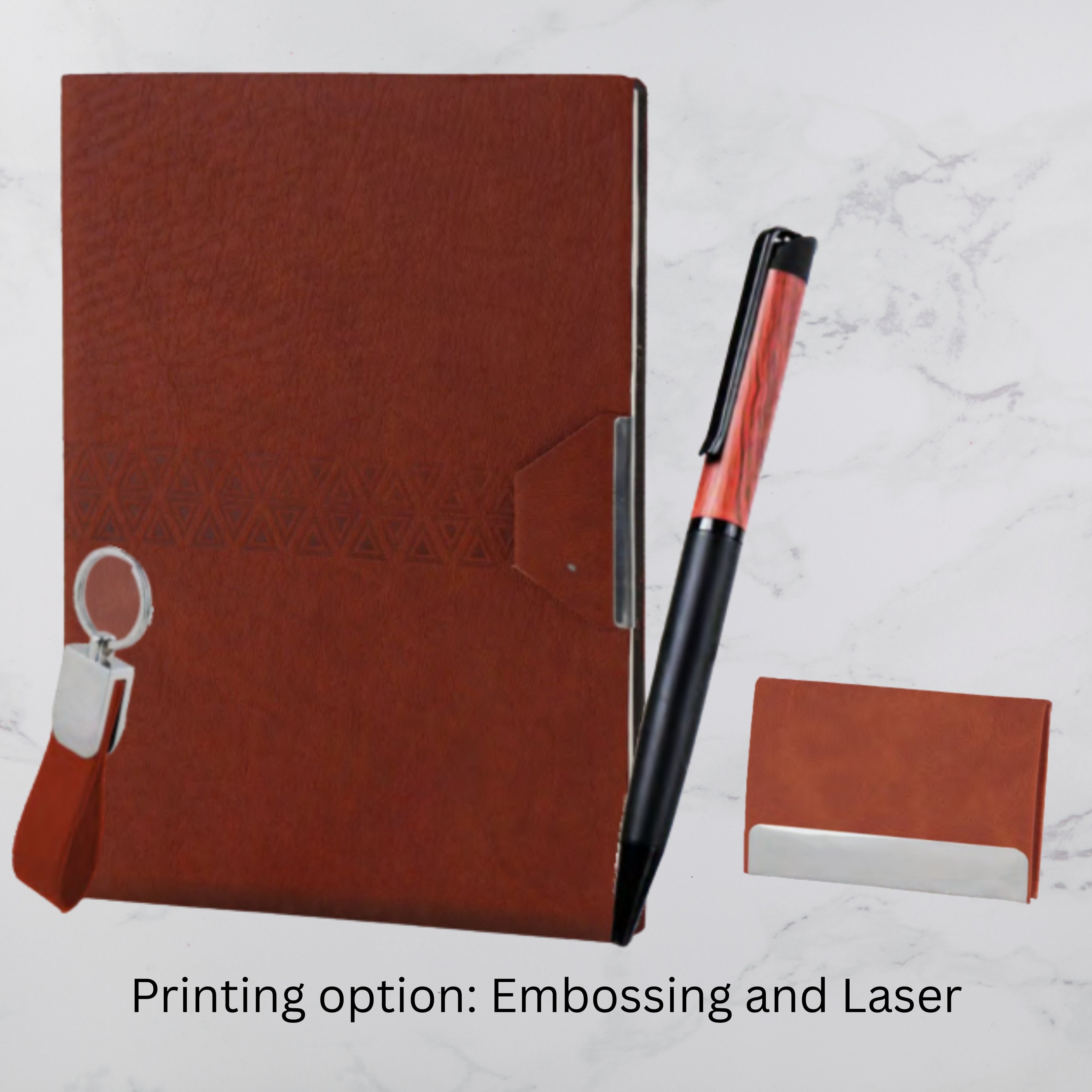 Dark Brown Ribbon Design Diary Keychain Card Holder & Ball Pen Set (MOQ - 25)