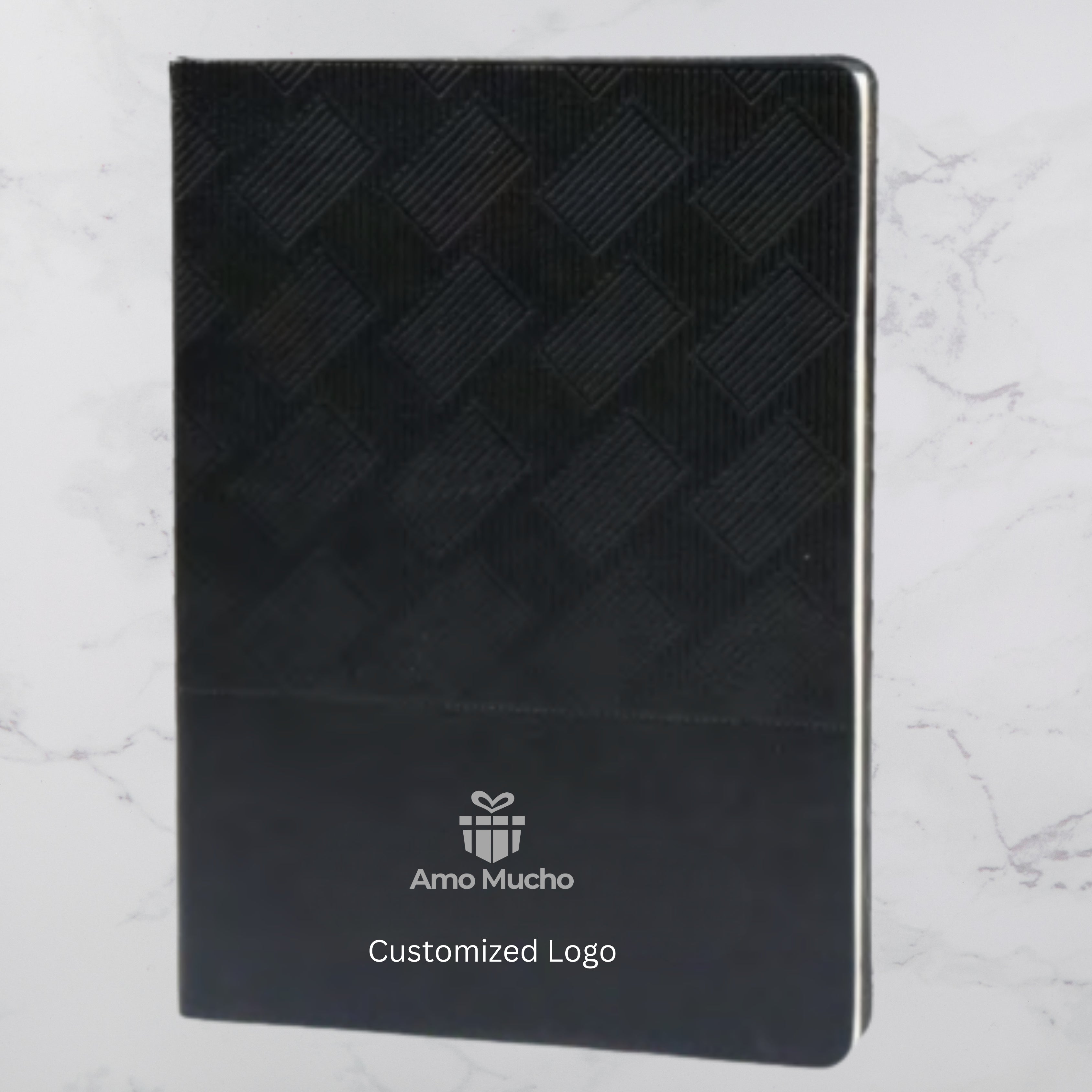 Deep Black Slanting Box Design PU Cover Diary (MOQ- 25)