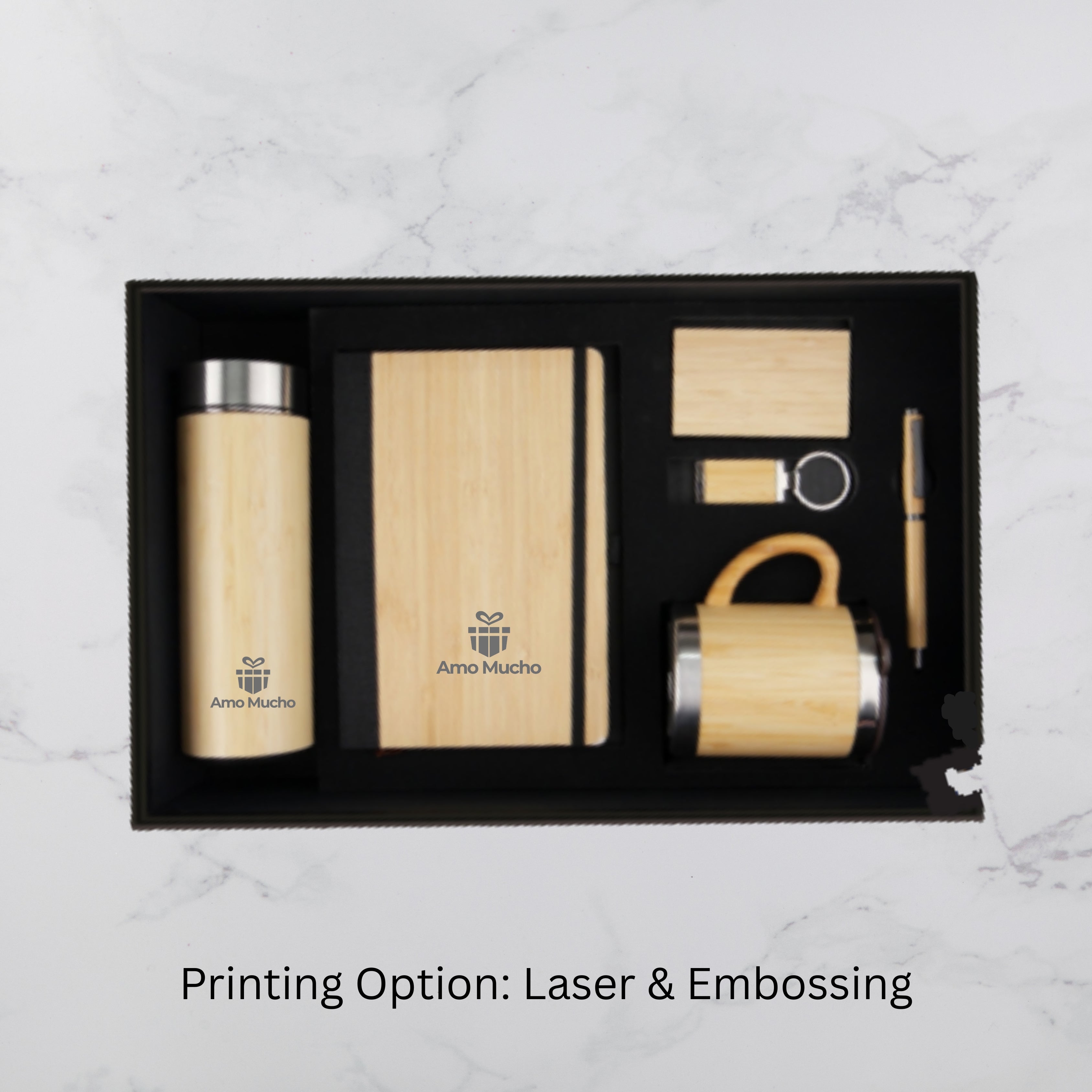 Executive Bamboo Design Gift Set with Temperature Bottle Notebook and Accessories (MOQ - 25)