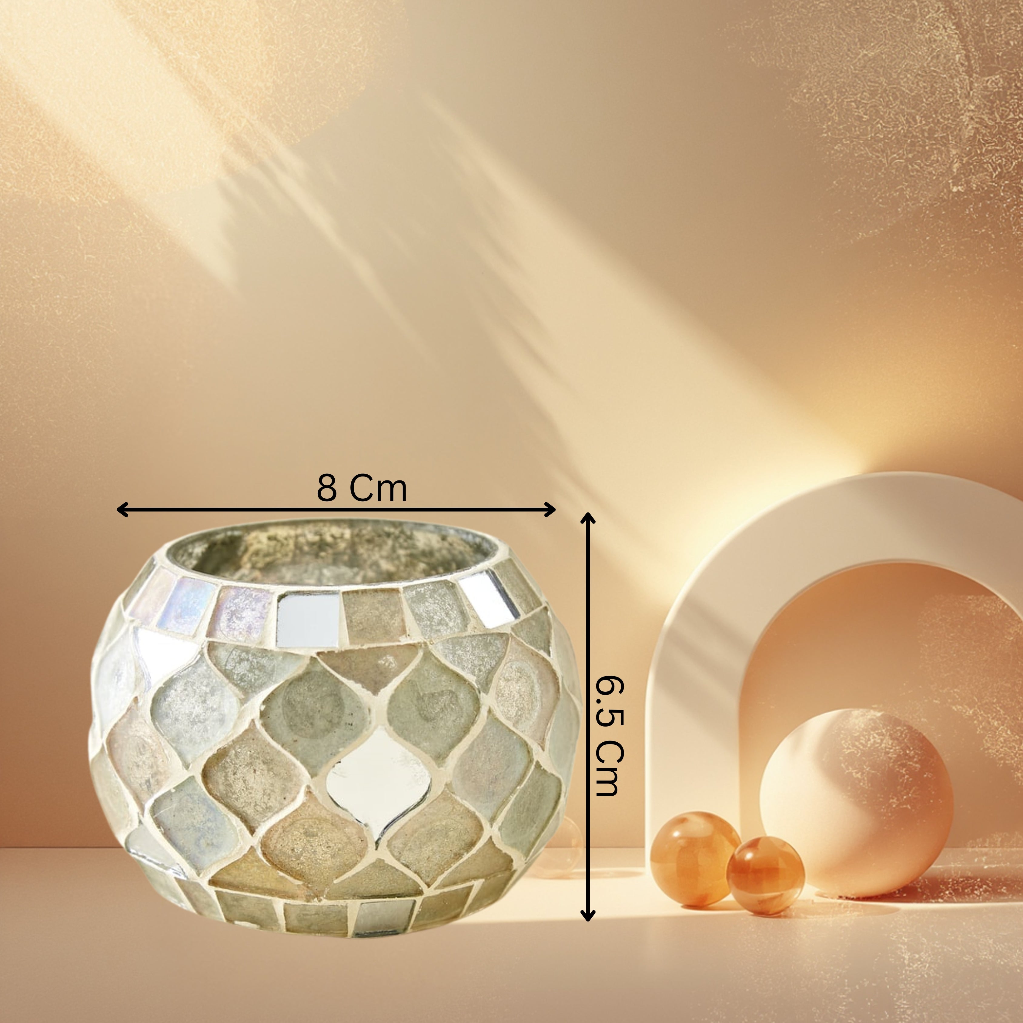 Illuminate your space with this exquisite glass votive holder. Featuring hand-laid mosaic patterns that shimmer beautifully when lit, it adds... Read more