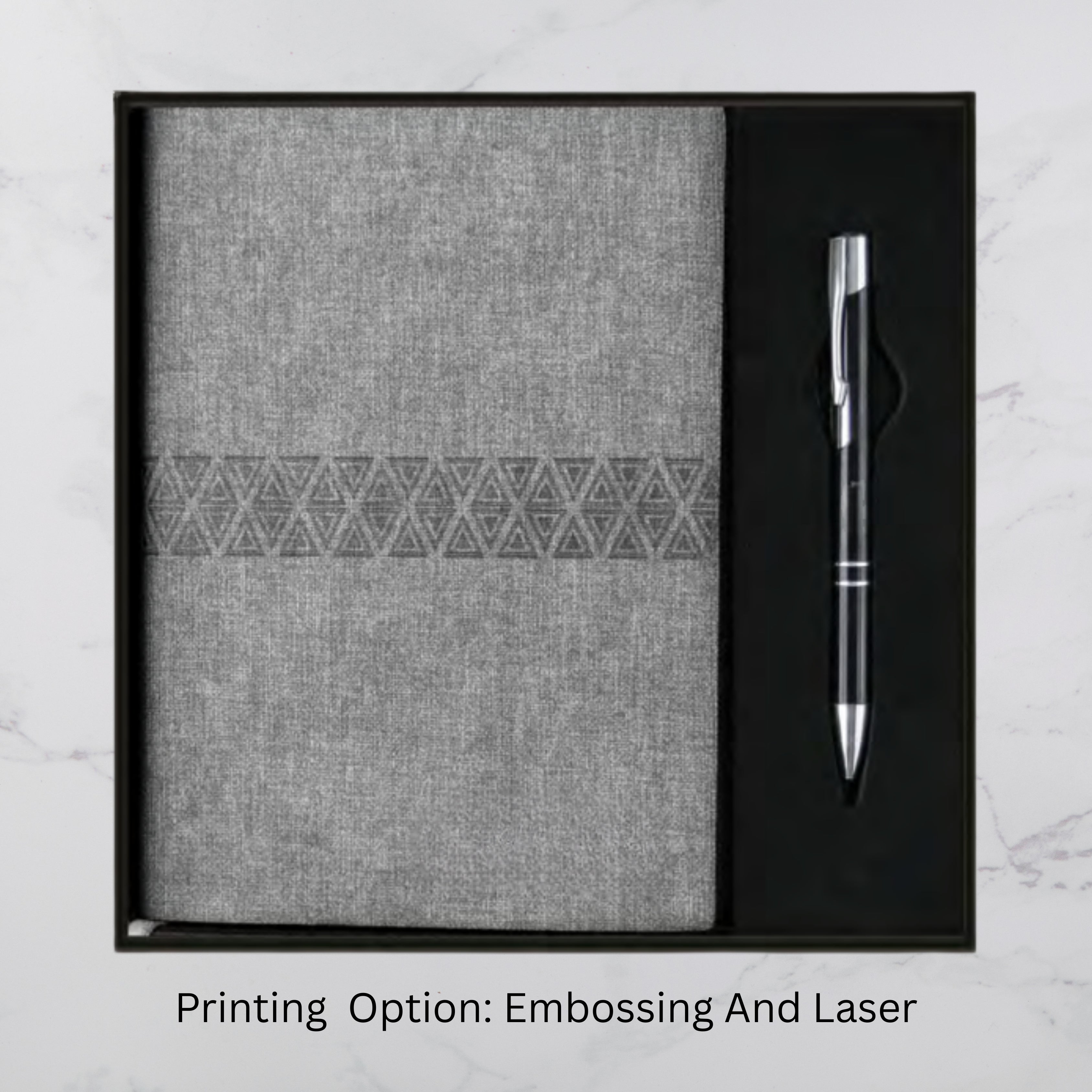 Grey Center Ribbon Designed PU Cover Diary & Ball Pen Set (MOQ - 25)