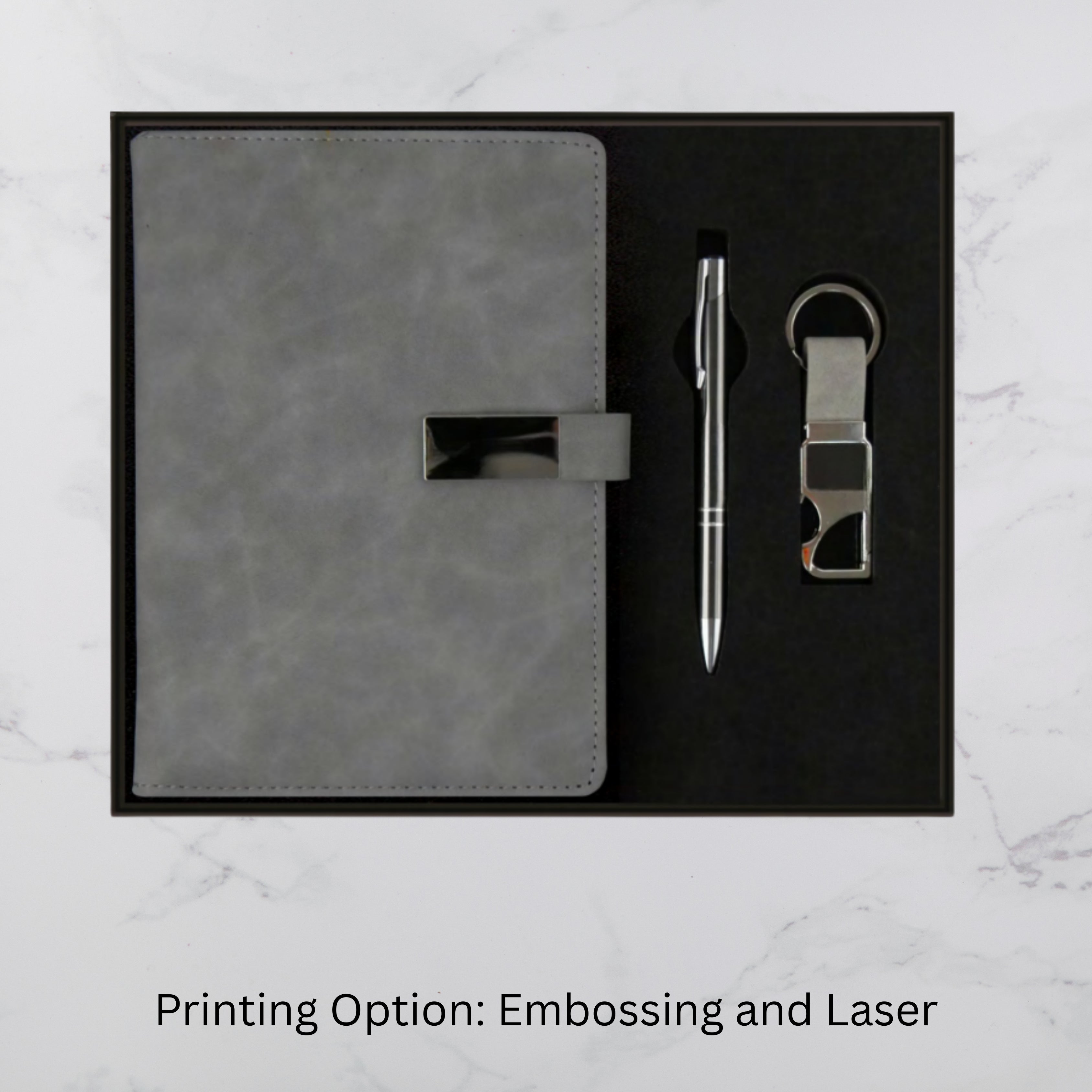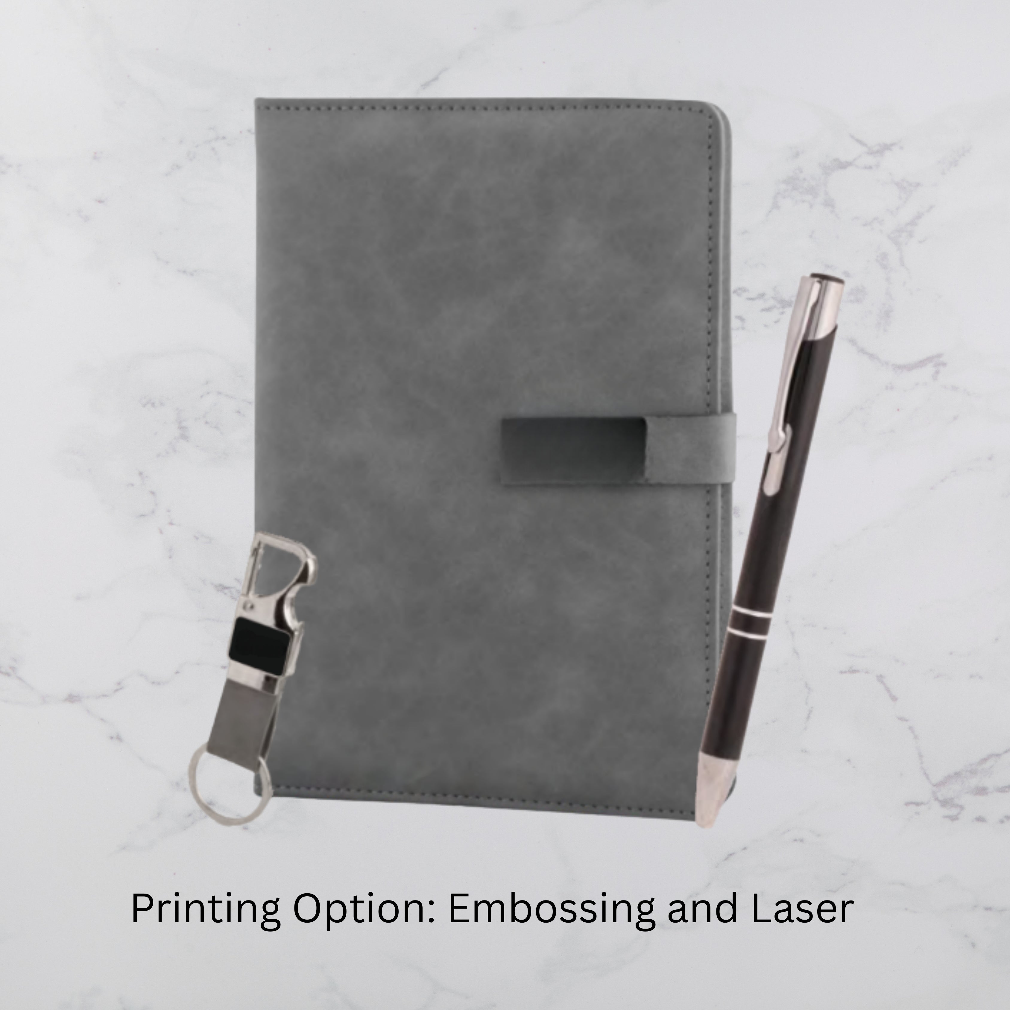 Grey Strap Lock Diary Keychain & Ball Pen Set (MOQ - 25)
