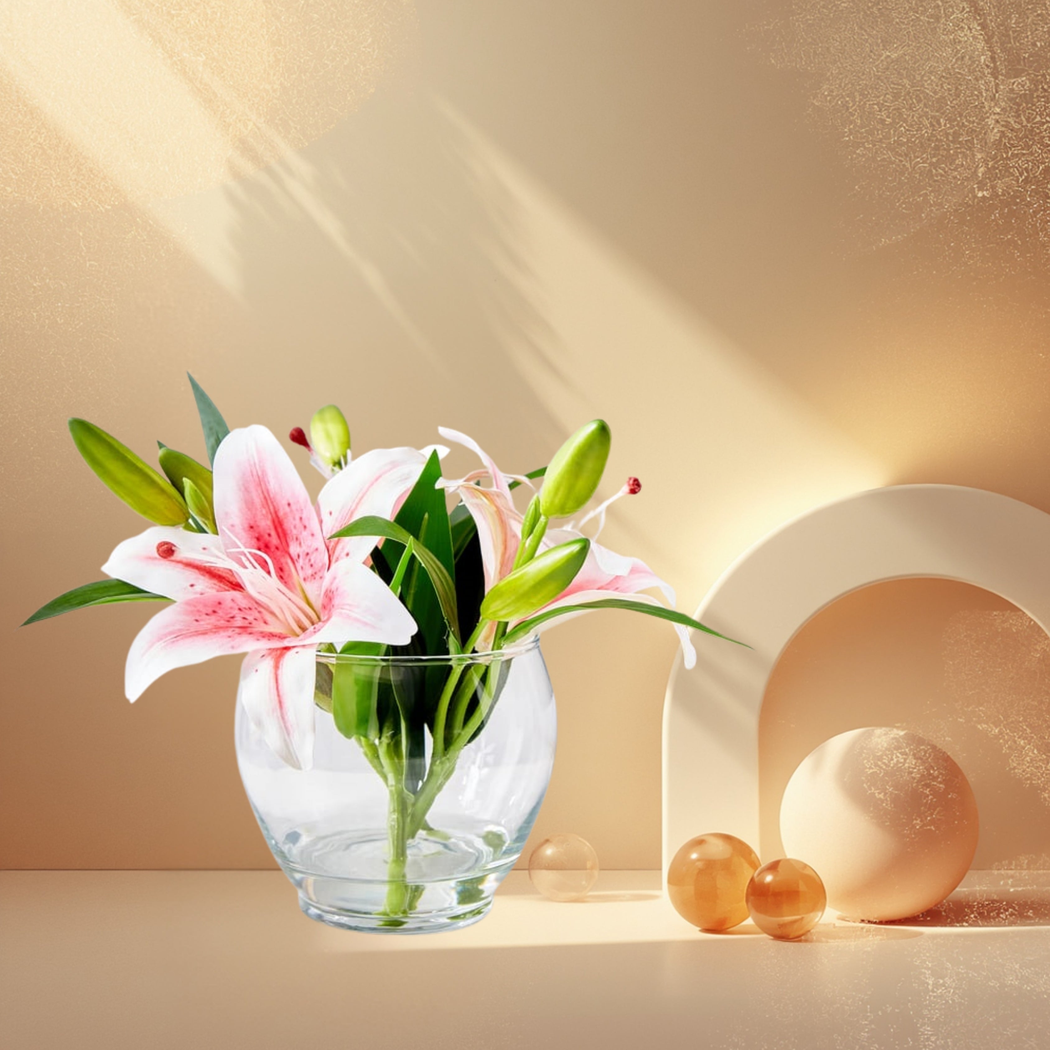 Bring the beauty of nature into your home with this artificial plant. Nestled within a glass pot, these lily flowers... Read more