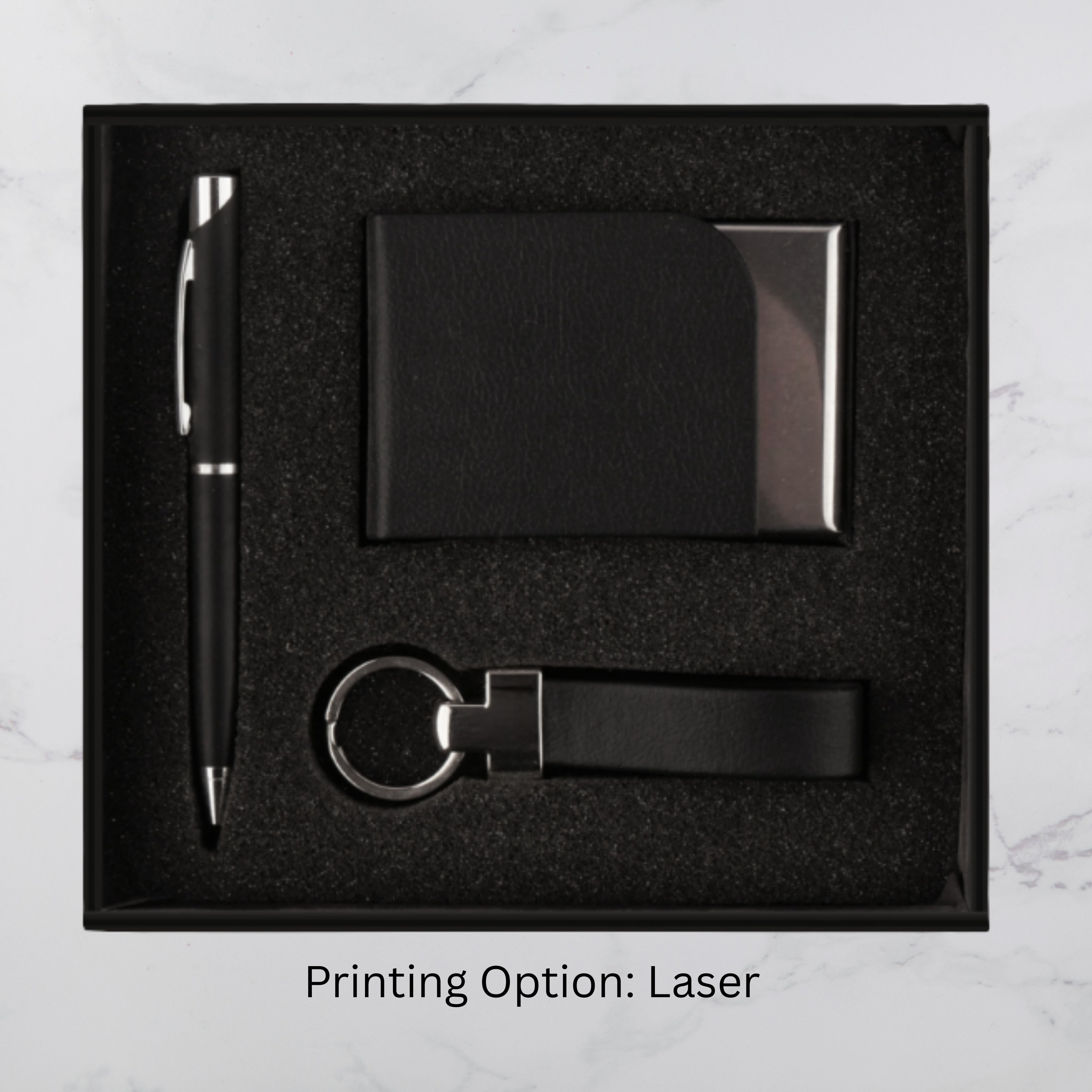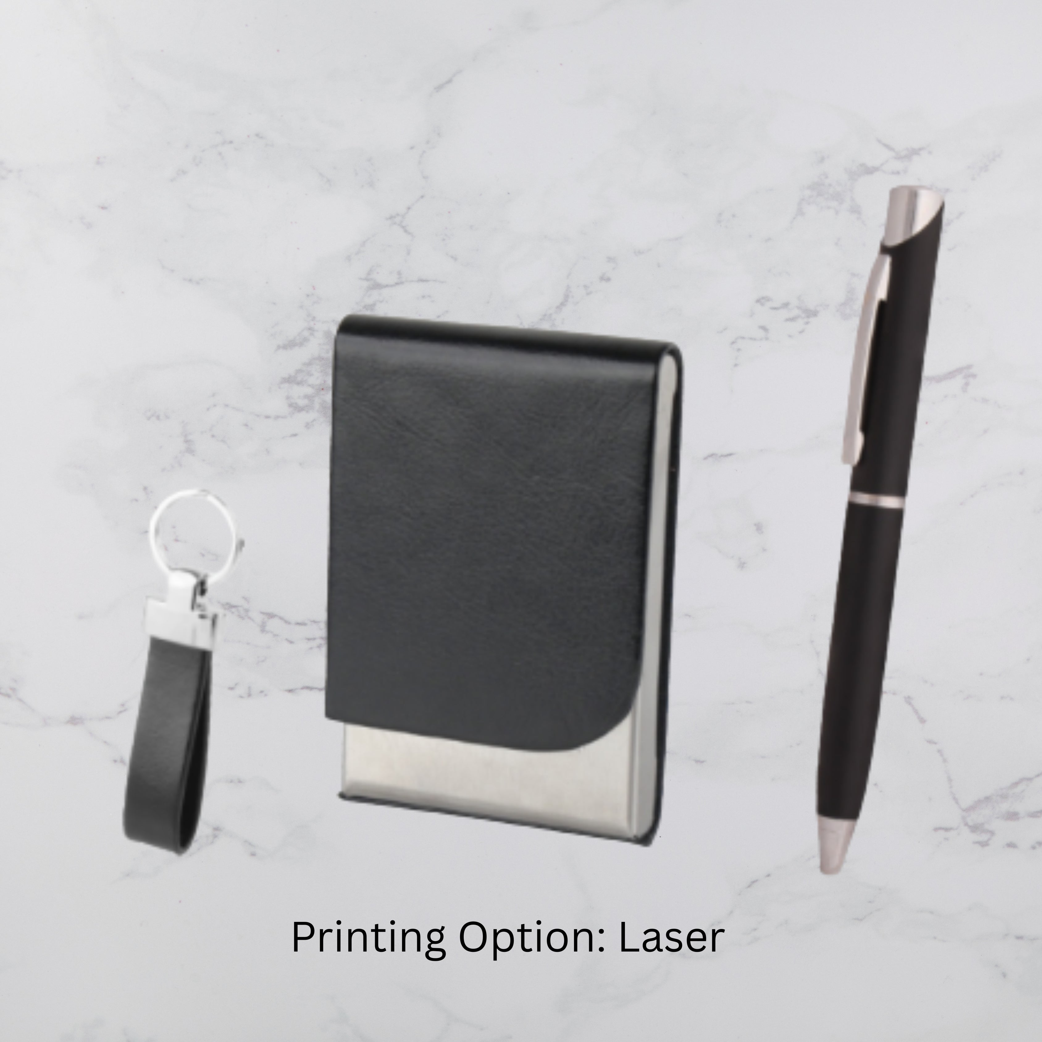 Luxury Black Gift Set With Pen Card Holder and Keychain (MOQ - 25)