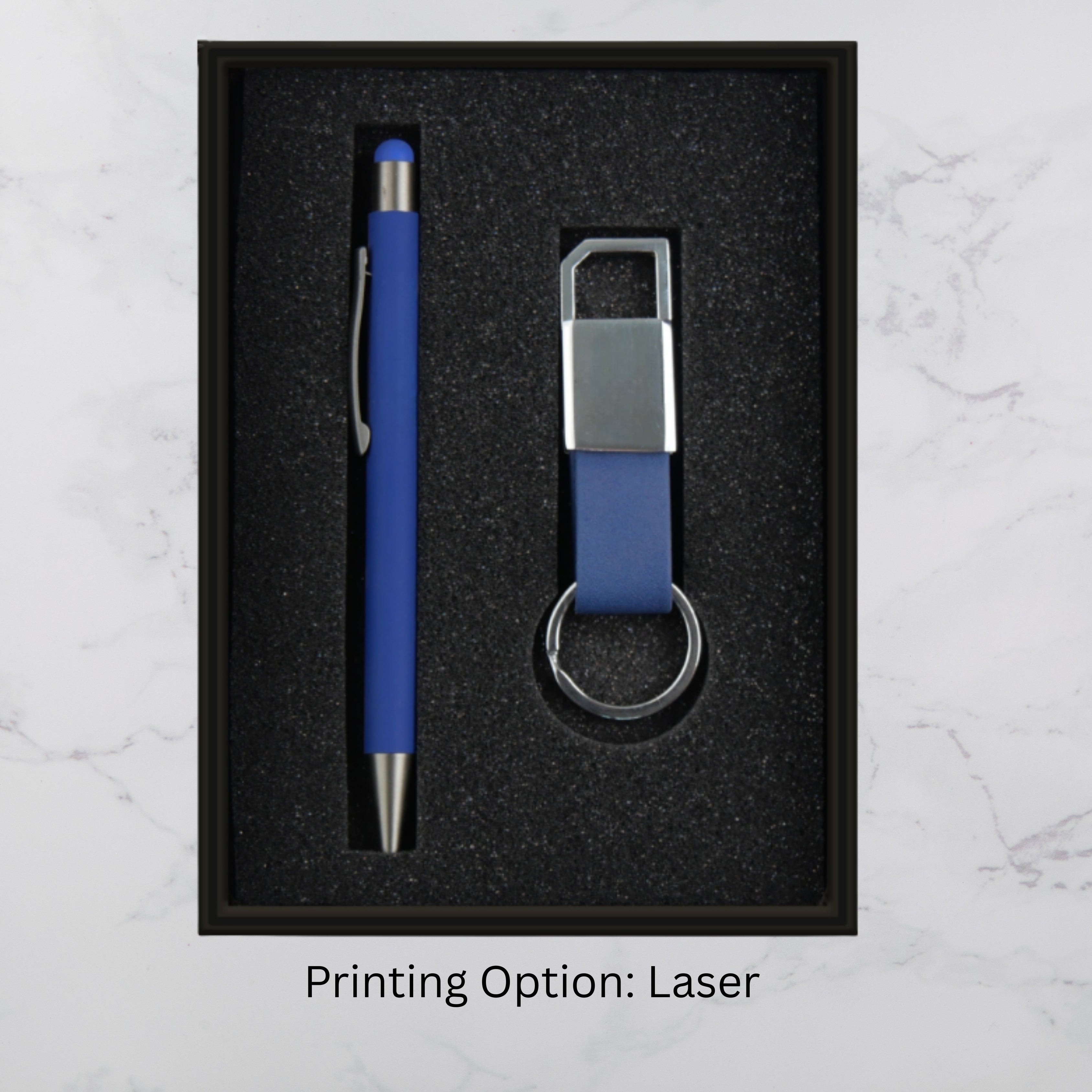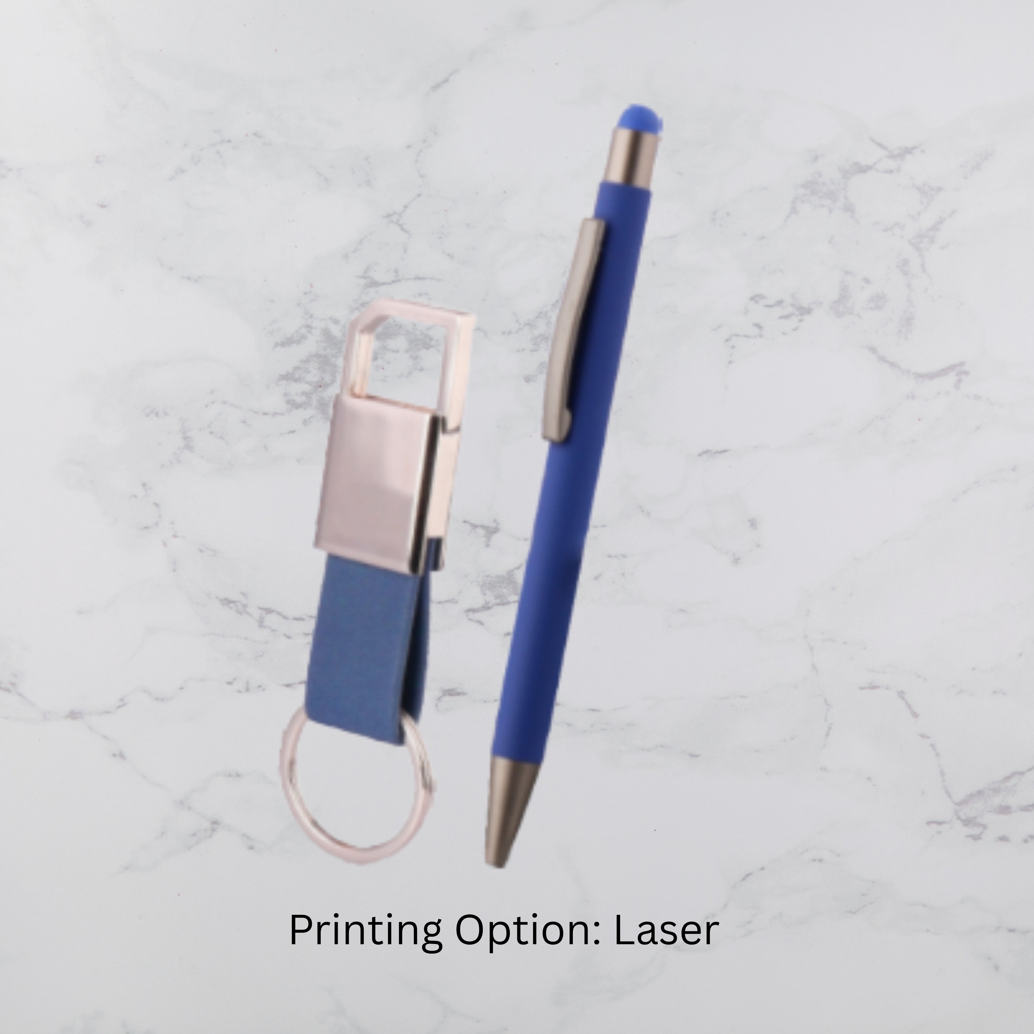 Plain Blue Ball Pen and Keychain Gift Set (MOQ - 25)