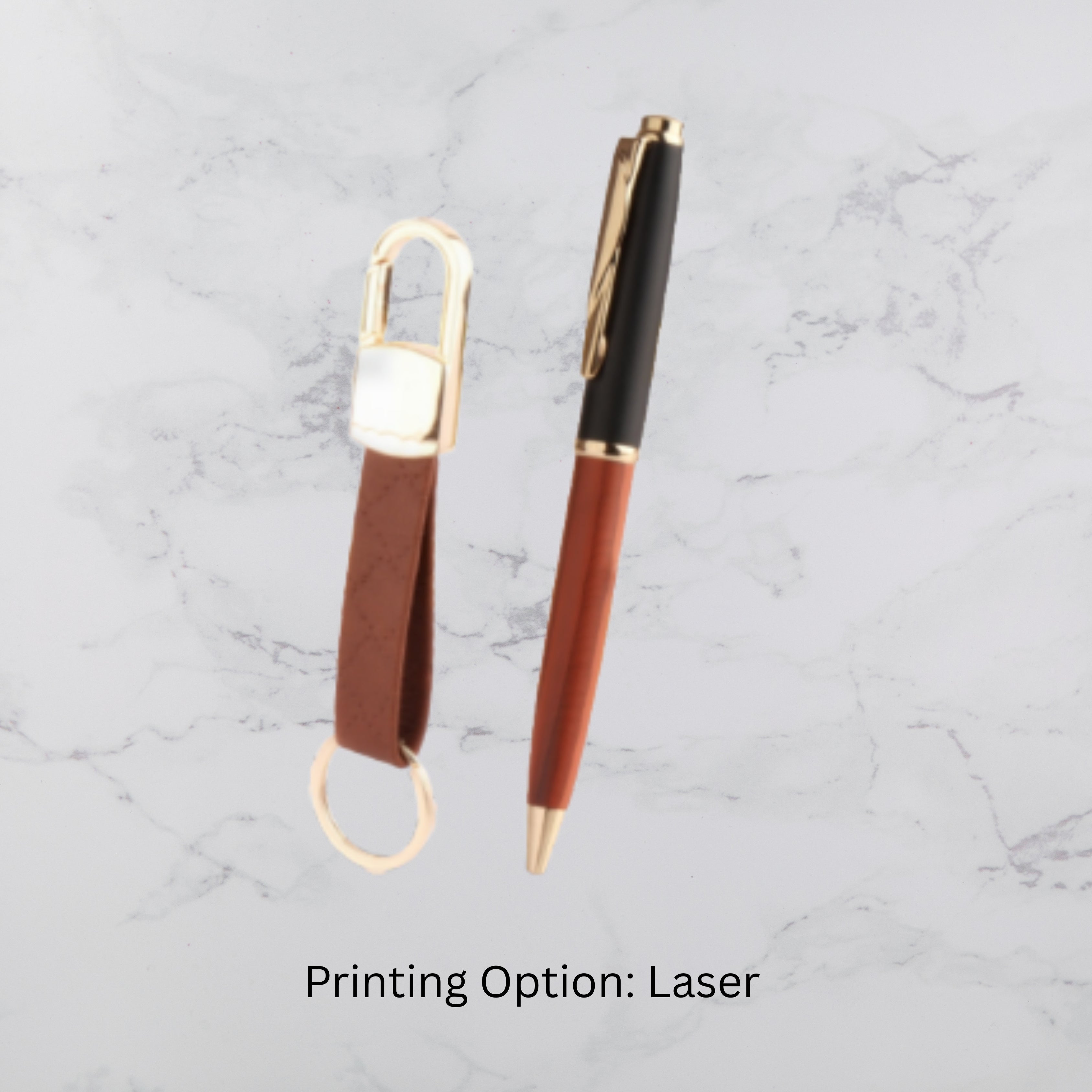 Premium Brown Ball Pen and Keychain Gift Set (MOQ - 25)
