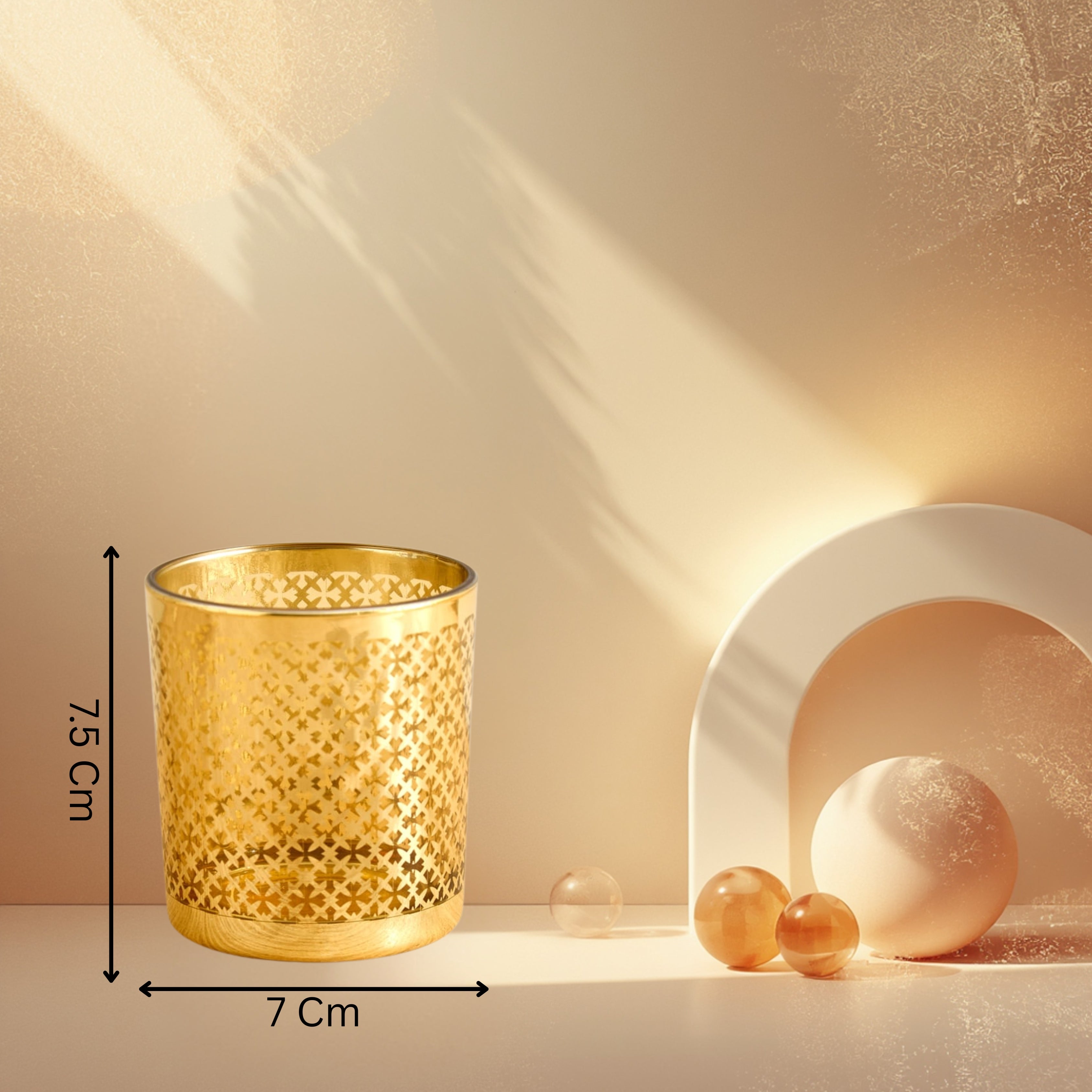 Add a touch of shimmer and sophistication with these glass T-light holders. Featuring a radiant metallized finish, they reflect candlelight... Read more